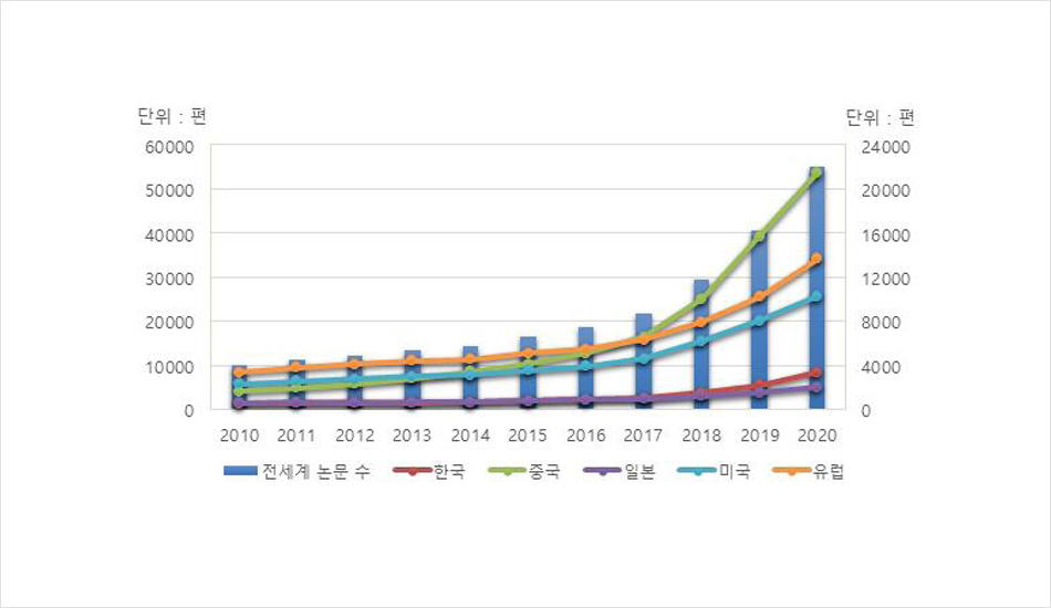 [그림 7] 지능형반도체 소자 기술 관련 일정 주기별 논문 출판 수 변화